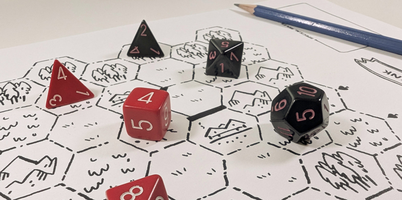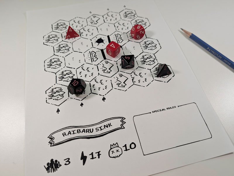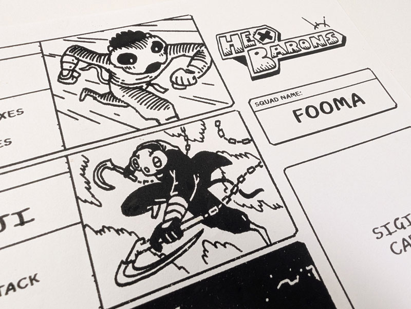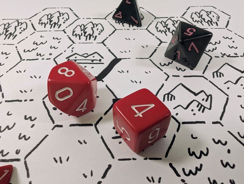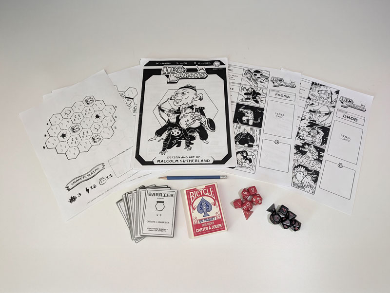 The spark for Hex Barons came from my studio partner, Simon Cottee, who first floated the idea of a hex-based game where dice act as units. For me, it tapped into the nostalgia of my early days with Battletech and D&D—but I wanted something more accessible and creative. Hex Barons is designed with love as a quick, print-and-play squad skirmish game that uses only simple, inexpensive components. It works as a gateway for new players—my own kids included—while still carrying the crunchy, DIY old school energy of ’80s and ’90s tabletop games. Just as important, it invites players to add their own creativity by drawing maps and designing their own character art.